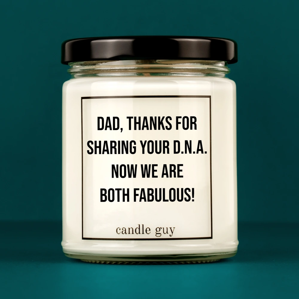 Die Spruch Kerze "Dad, thanks for sharing your D.N.A." brennt ultralange und duftet himmlisch – das perfekte Geschenk für dich oder andere.