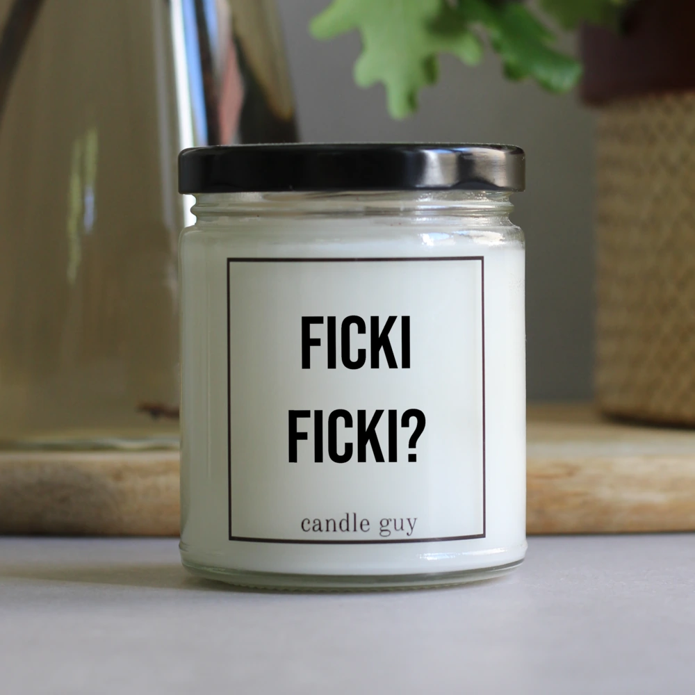 Die Spruch Kerze "Ficki Ficki?" brennt ultralange und duftet himmlisch – das perfekte Geschenk für dich oder andere.