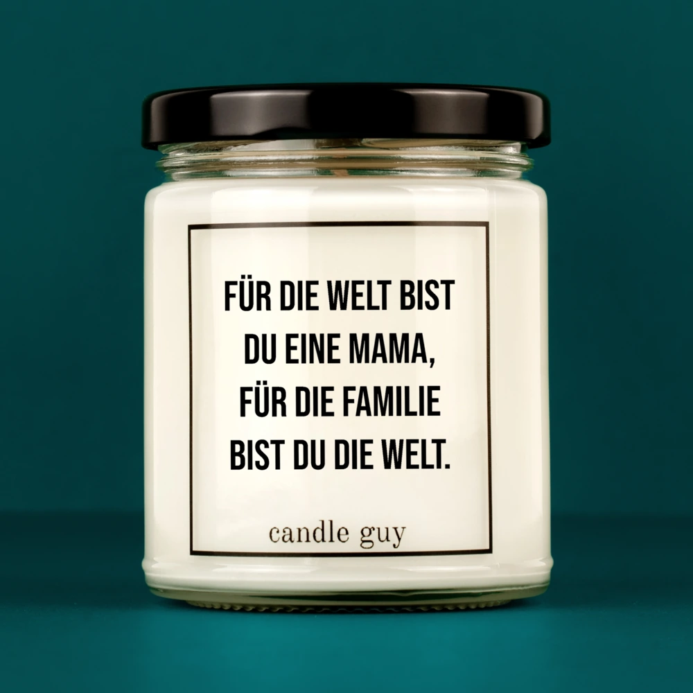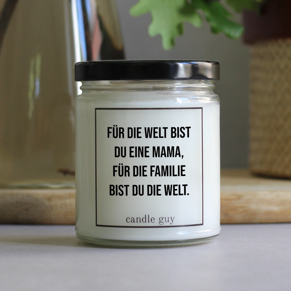 Die Spruch Kerze "Für die Welt bist du eine Mama." brennt ultralange und duftet himmlisch – das perfekte Geschenk für dich oder andere.