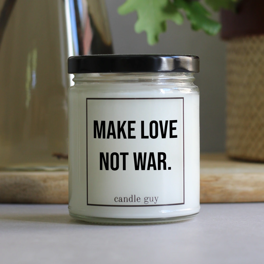 Die Spruch Kerze "Make love not war." brennt ultralange und duftet himmlisch – das perfekte Geschenk für dich oder andere.