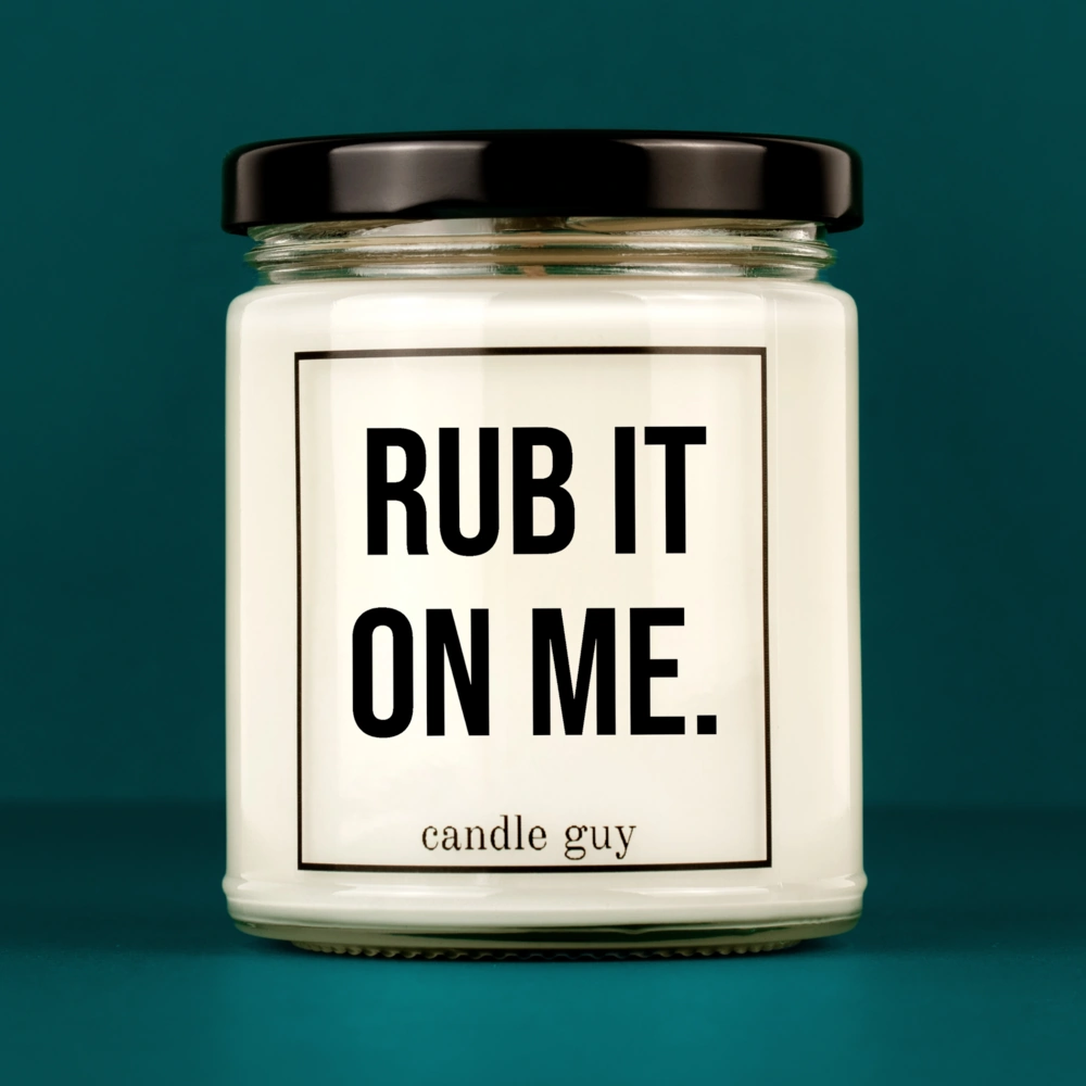 Die Spruch Kerze "Rub it on me." brennt ultralange und duftet himmlisch – das perfekte Geschenk für dich oder andere.