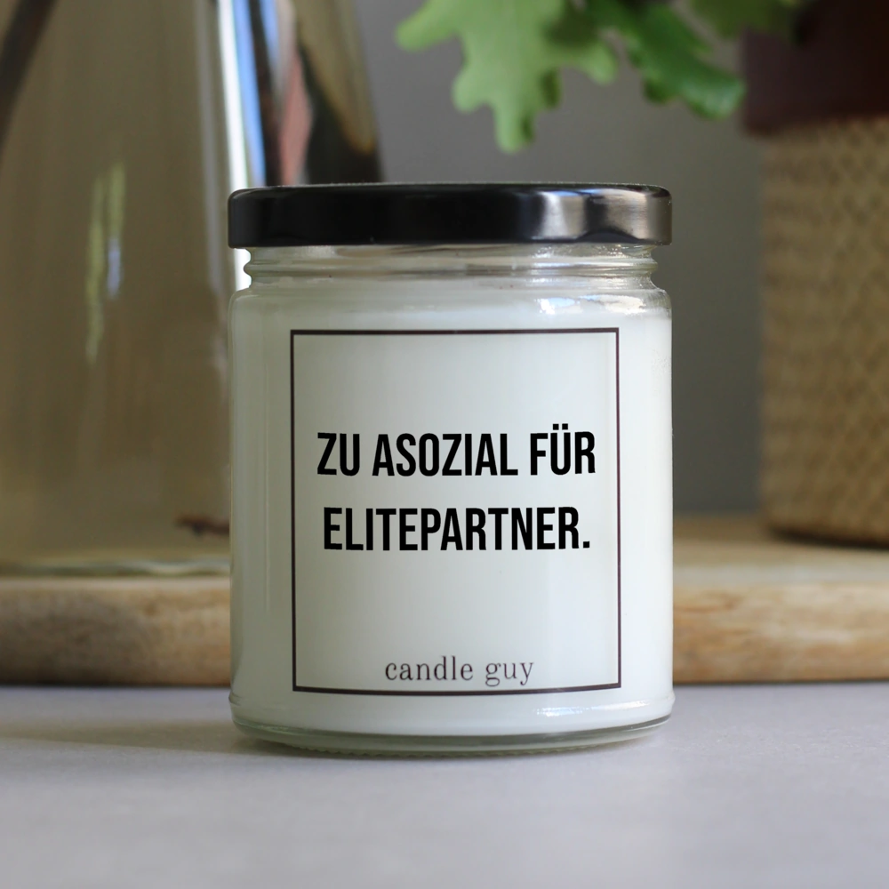 Die Spruch Kerze "Zu asozial für Elitepartner." brennt ultralange und duftet himmlisch – das perfekte Geschenk für dich oder andere.